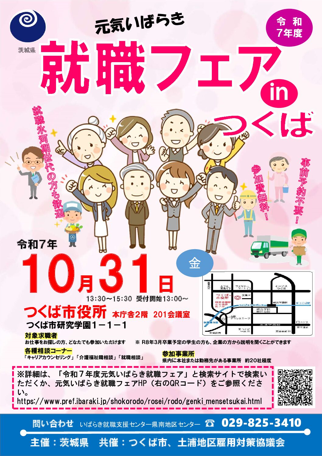 令和7年10月31日(金)13:30~15:30 つくば市役所で開催される「元気いばらき就職フェアinつくば」に参加いたします。 いちはらメディカルグ…